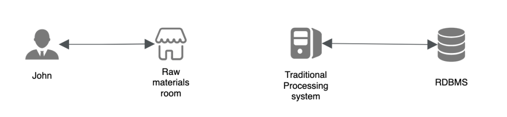 This is a comparable situation for traditional data processing systems where the data was generated at a steady rate and was structured in nature. Therefore, the processing systems could comfortably manage analysis. All the data was stored in RDBMS and processing systems would import data from it.
