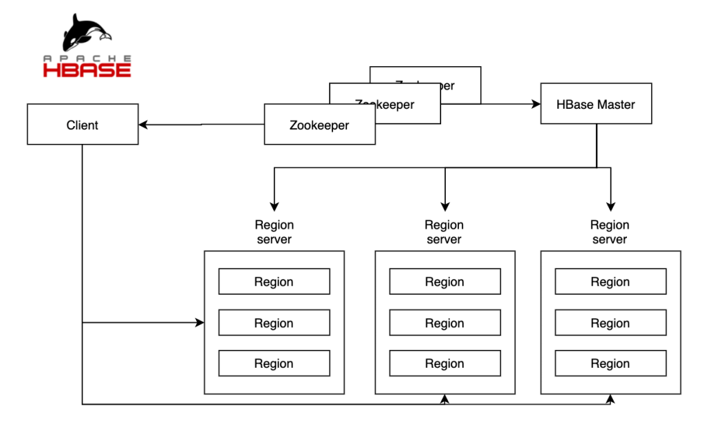 HBase works on the concept of master and slave architecture. HBase master nodes handle the responsibilities like creation and deletion of tables and handling the splitting of slave servers. The slave servers are grouped together into regions servers which have thousands of regions in it. A region can be defined as a group of rows in a table. There is another component called zookeeper which handles the syncronization between all these region servers and their coordination. All region servers and the HBase master regularly send heartbeat to the zookeeper which indicates which servers are active and healthy. This ensures high availability and unhealthy servers are replaced by the zookeeper.