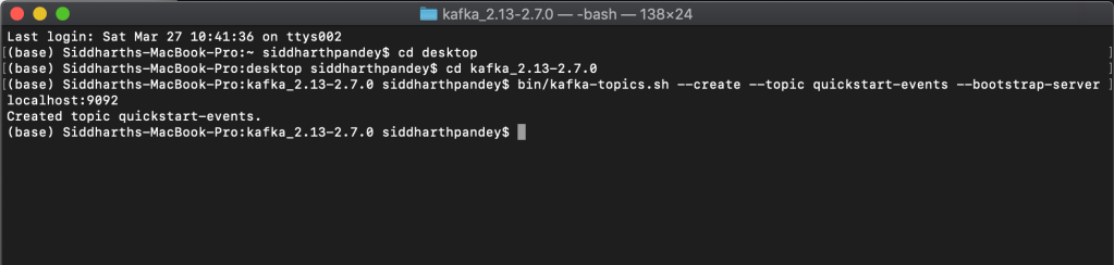 $ bin/kafka-topics.sh --create --topic quickstart-events --bootstrap-server localhost:9092