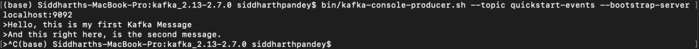$ bin/kafka-console-producer.sh --topic quickstart-events --bootstrap-server localhost:9092