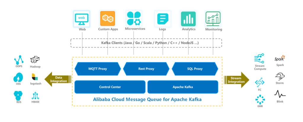 This is an easy way to set up kafka environment in your local machine and manage the topics. But in an enterprise scenario, where there are hundreds of producers, consumers and thousands of topics, it can get overwhelming to manage all the brokers and topics. This is where managed services on public cloud come handy. Kafka brokers are now hosted on cloud as a managed service. One such example in public cloud is Alibaba Message Queue for Apache Kafka.