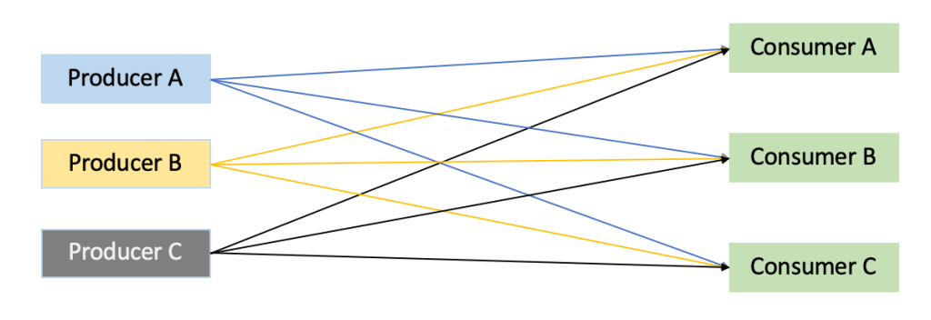 Topic: A topic is a unique name for a data stream that producer and consumer applications are using. Data published by producers is segmented into various topics (like Payment Data, Inventory Data, Customer Data etc), and consumer applications can subscribe to whichever topic they would like to access data from. More that one producers can publish data to a single topic, and more than one consumers can pull data from a single topic.