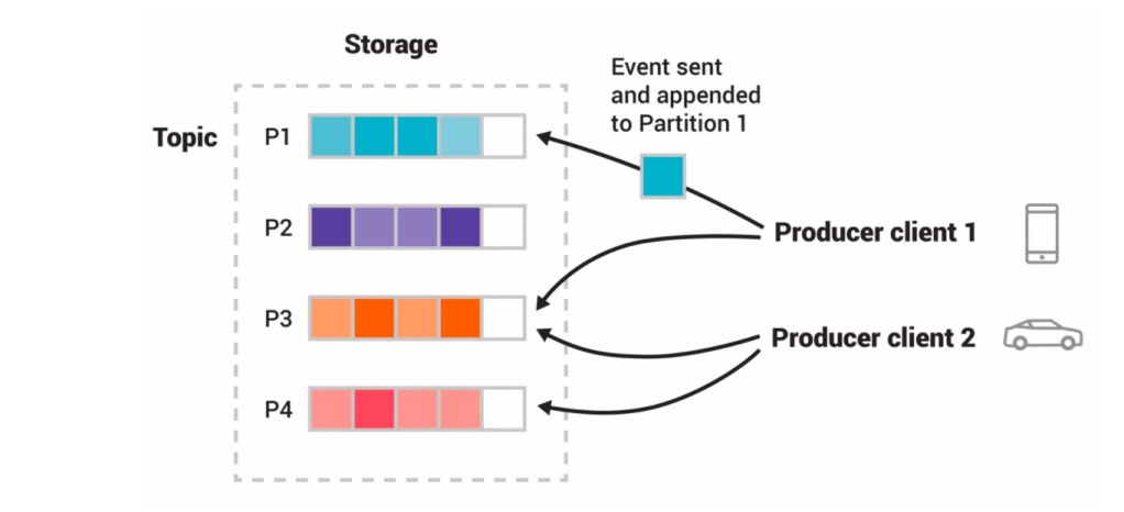 Producer: A producer is any application that sends data to Kafka. In the above example of Bob paying $100 to Kevin, the event was produced probably by the payment application which published the payment information and sent it to Kafka for storage and processing.